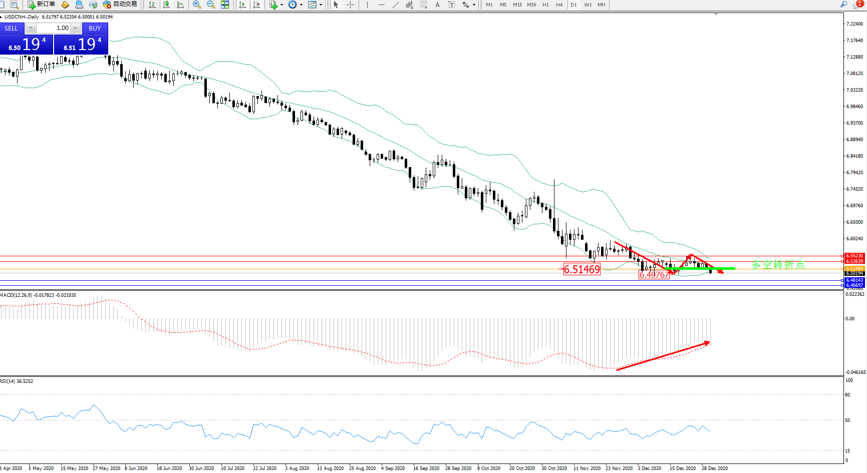 交易策略:6.51469下方看跌,目标6.48143、6.46697
