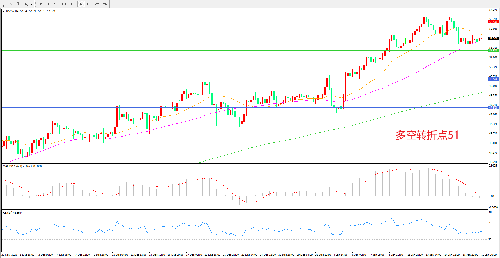 交易策略:在51.50之上看涨,目标53.50          57.00