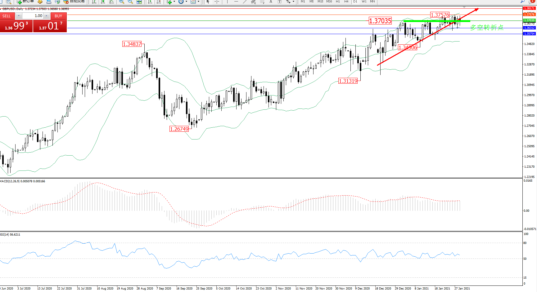 交易策略:1.37035上方看涨,目标1.37576、1.37171