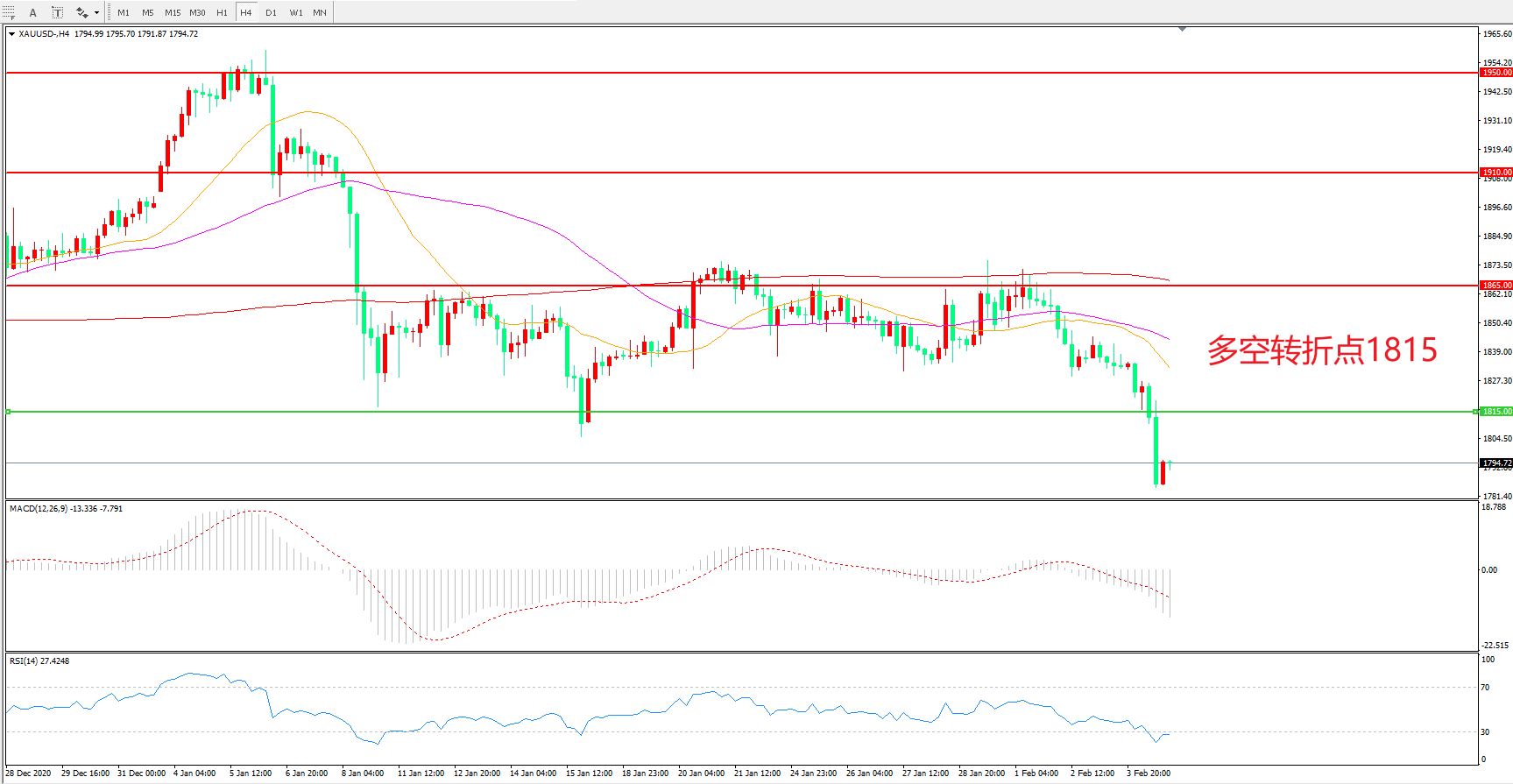 多空转折点:1815.00