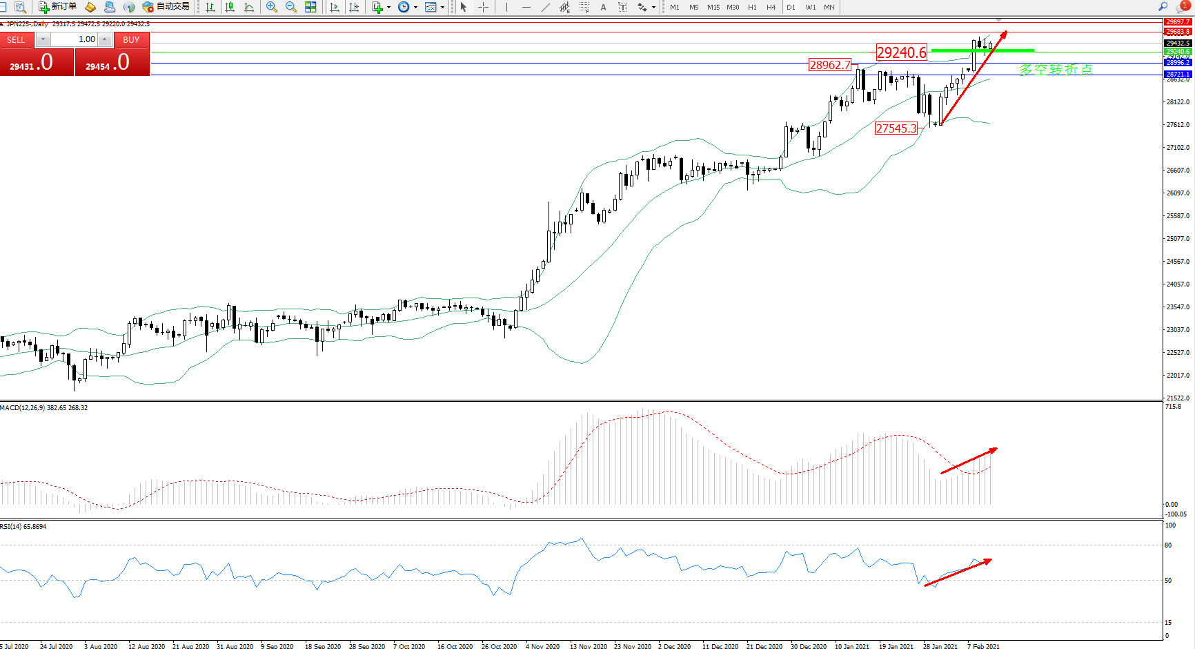 日经225指数2月10日(周三)收盘上涨39.07点,涨幅0.13%,报29545.00点。日本央行委员中村丰明:将研究如何降低政策带来的副作用。将会研究负利率的副作用。可以清晰地看到日本央行资产购债的影响。不相信日本央行正在支持股市价格。如果像上一次全球经济衰退这样的冲击引发风险溢价的过度上升,日本央行必须采取行动纠正这种情况。现阶段日本央行的ETF购买不能算是“及时”的。在风险溢价波动的情况下,是ETF购买最佳的最佳时机。日本央行将在3月研究如何应对可能出现的经济下行压力问题。据日本广播协会(NHK)10日报道,关于日本目前实施紧急事态宣言的10个都府县何时可以解除宣言的问题,日本政府认为,首都圈和关西圈目前尚不具备解除宣言的条件。修正后的防控新冠疫情特别措施法将于2月13日正式实施,在此之前,日本政府12日将征求专家等组成的咨询委员会意见,并在此基础上对“基本应对方针”进行调整。与此同时,政府正在研究能否解除部分地区的紧急事态宣言。