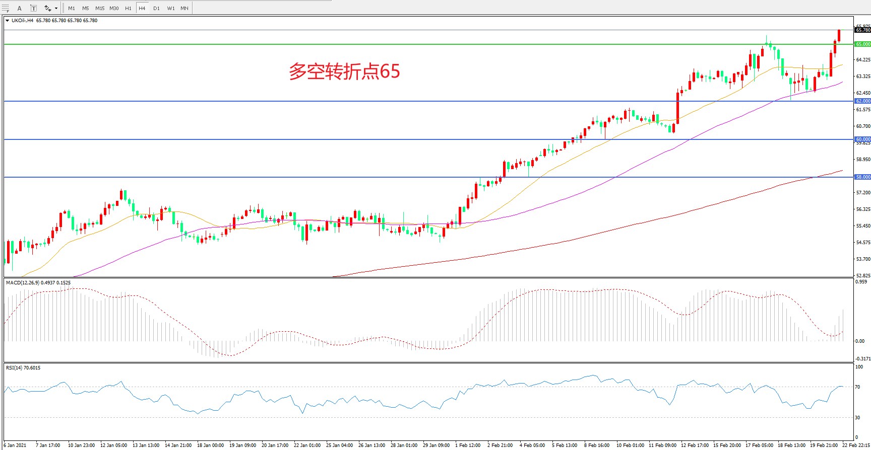 多空转折点:65.00