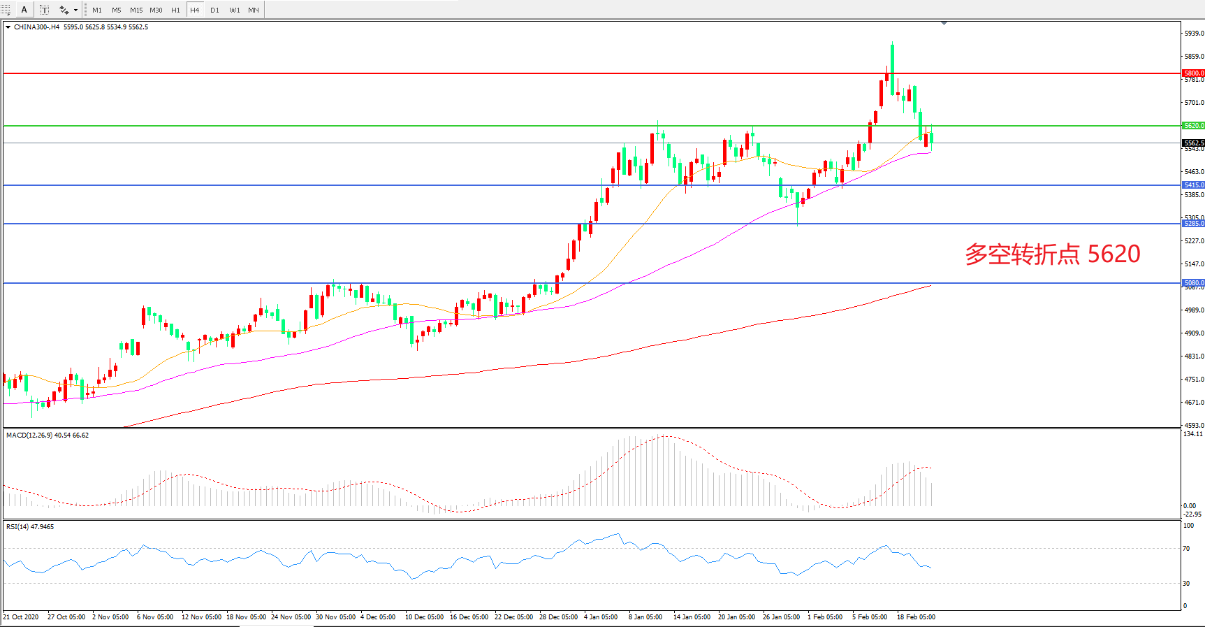 多空转折点:5620.00