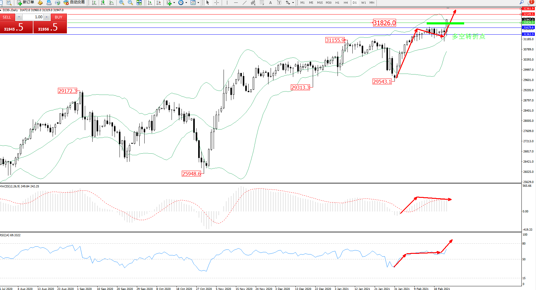 道琼斯指数2月24日(周三)收盘上涨424.50点,涨幅1.35%,报31961.86点。美股三大指数低开高走,道指盘中首次站上32000点,受助于美联储主席鲍威尔的鸽派发言、美元指数大幅回落,美国利率将保持在低位,美联储将继续购买债券以支持美国经济。货币政策仍然需要宽松,经济复苏不平衡且远未完成。长期美债收益率周三再度飙升,10年期美债收益率一度涨超9个基点,创近一年新高至1.433%;30年期美债收益率升至2.291%,为去年1月以来最高水平。当美国证券交易委员会SEC公司融资小组在审核公司监管文件时,SEC代理主席Allison Herren Lee将要求把注意力集中到气候变化方面。Lee在公告里提到,投资者在作出投资决策时,对气候相关问题的关注程度处于空前的高度,SEC有责任确保投资者可以接触到相关公司的材料信息。此举意味着,SEC可能会出台新规,或将2010年版本关于气候变化信息的监管信息披露指引升级。