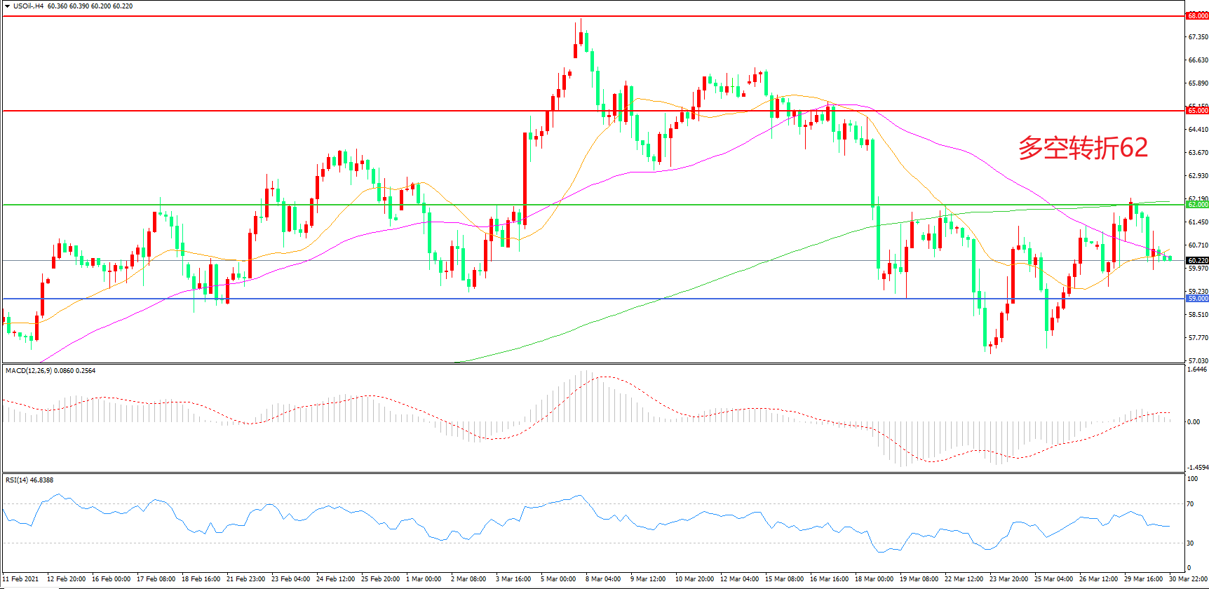 备选策略:在62.00之上看涨,目标65.00    68.00