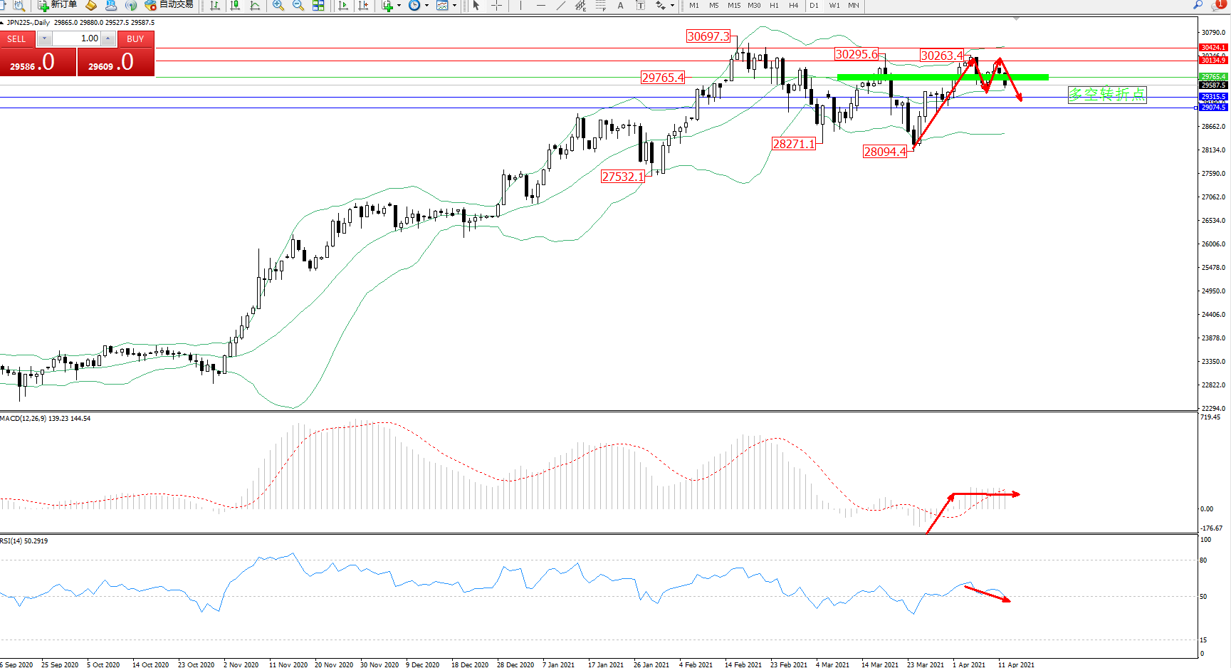 日经225指数4月12日(周一)收盘下跌215.06点,跌幅0.72%,报29553.00点。市场投资者情绪仍在受全球各国疫苗接种进程及疫苗有效性与安全性顾虑的左右,日本石川县立中央医院(金泽市)工作的女性,在完成两剂新冠疫苗接种后,确诊新冠肺炎。据悉,这名女性于3月13日和4月3日接种了新冠疫苗。之后,她作为新冠病毒感染者的密切接触者接受了检测,4月10日,她的检测结果为阳性。该女性为无症状感染者。市场已在截至目前的美债收益率大幅上涨中,反映出美国经济改善、疫苗接种进展、财政扩张措施的积极影响。美债收益率目前似乎处于盘整阶段;进一步上行可能会引发对于美联储缩减刺激的讨论声。