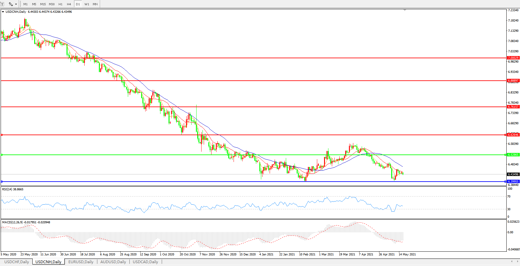 美元兑人民币USDCNH 日线图: