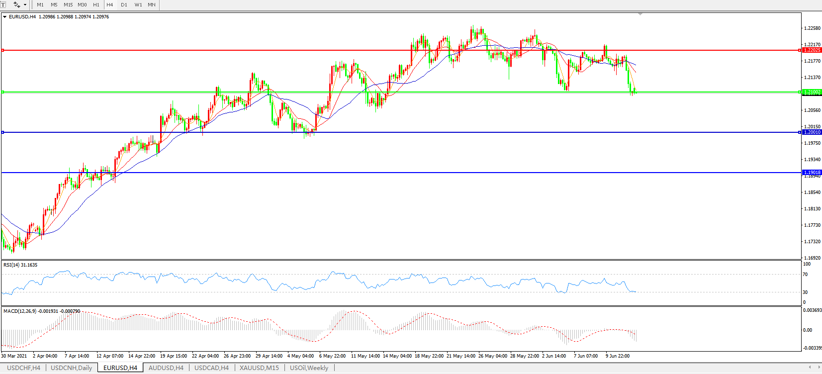 交易策略:1.2100下方看跌,目标1.2000、1.1900