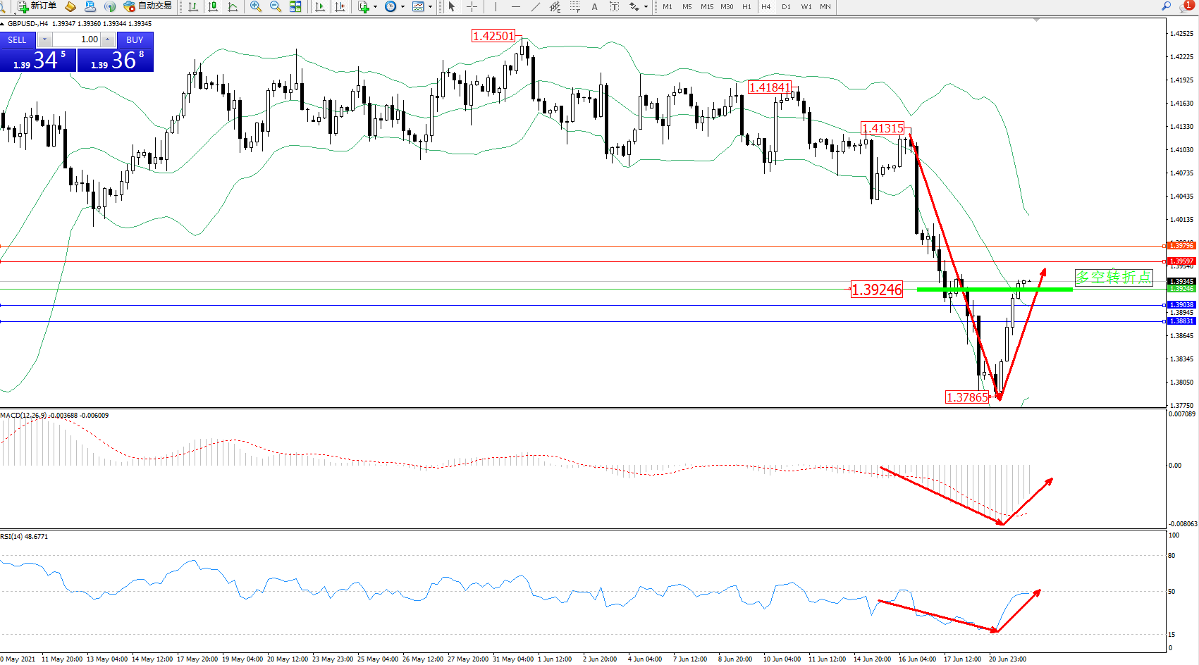 交易策略:1.39246上方看涨,目标1.39597、1.39796