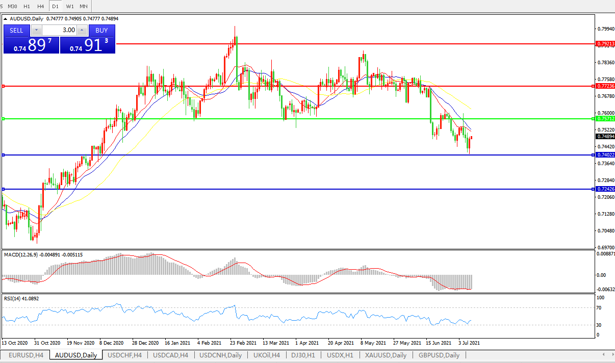 交易策略:0.7570下方看跌,目标0.7400、0.7240