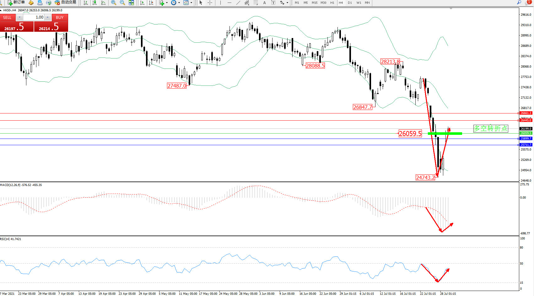 技术点评:空头动力急速下挫后,低位得到短暂支撑,开始强势V型反转上移,布林带指标呈收口走势持续下行,MACD指标处于空头区域低位开始震荡回升,RSI指标处于空头区域低位向上移动中;