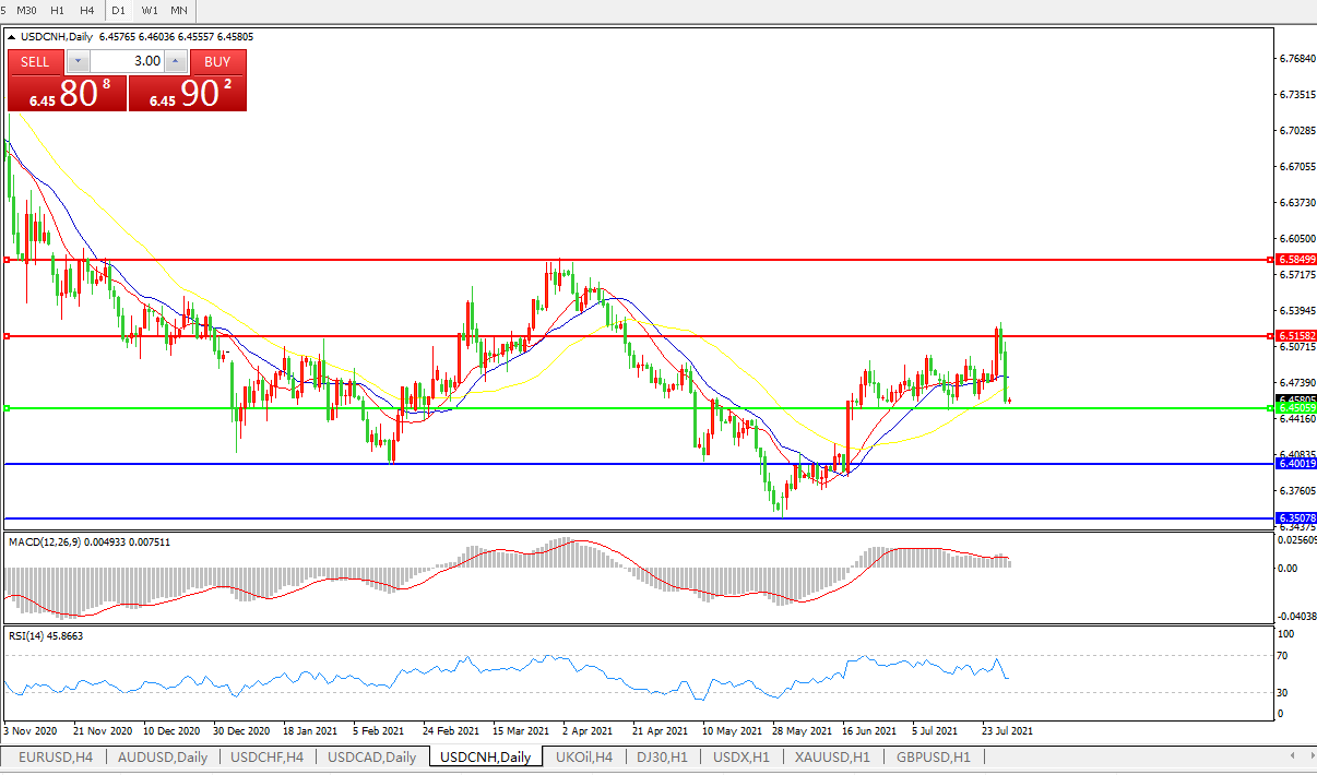 交易策略: 在6.4505之上,看涨,目标价位为6.5150,然后为6.5850。