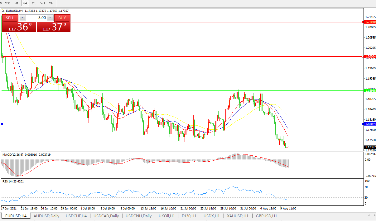 技术面简析:4小时图均线呈空头排列,汇价持续弱势下行,MACD运行于0轴下方且量能0轴下微放量,RSI震荡走弱,预计短期汇价大概率将在整理后进一步下行。