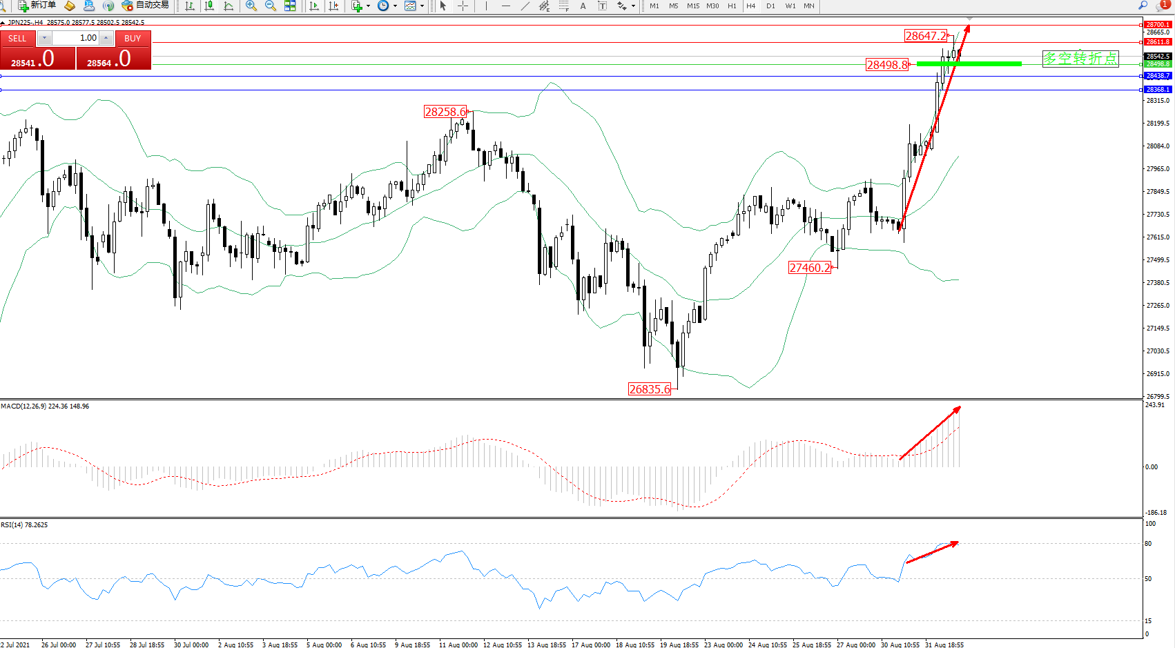 技术点评:多头动力延续布林带指标上轨附近节点强势拉升中,高位抵达28647位置节点后遇阻震荡,短期或延续上扬走势,布林带指标呈张口走势后开始有短期收口迹象,MACD指标处于多头区域维持拉升上扬中,RSI指标多头动力触及80均衡线附近整理后开始徘徊;