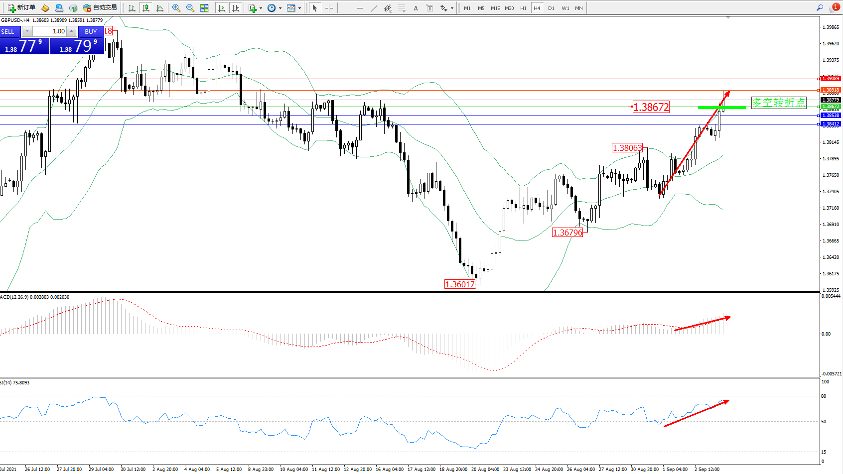 交易策略:1.38672上方看涨,目标1.38918、1.39089