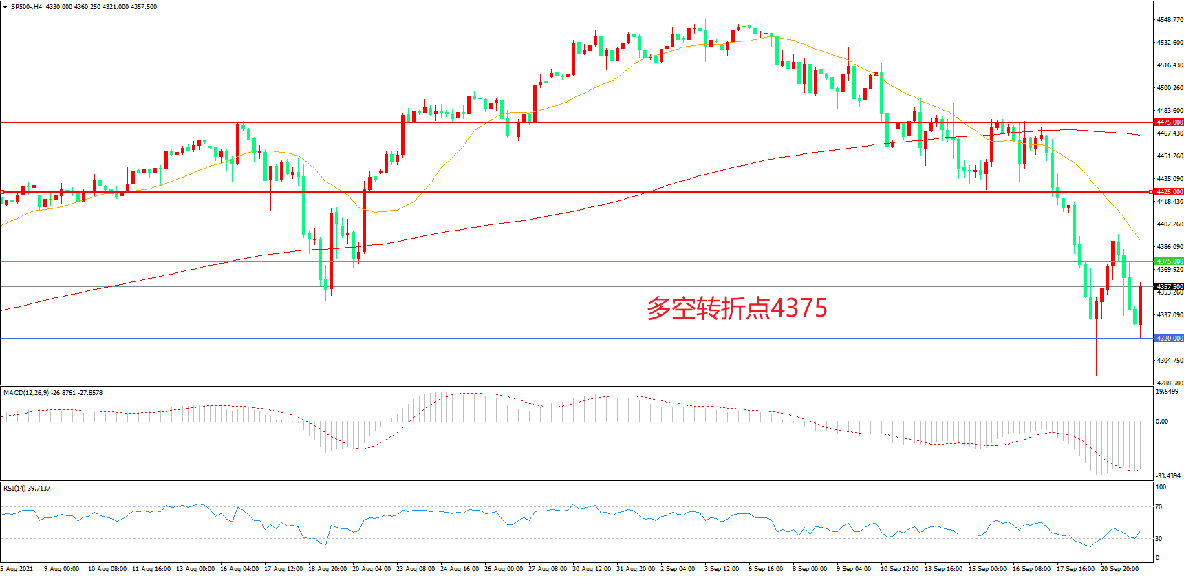 周二(9月21日),美联储货币政策会议首日,债务上限威胁笼罩下,恐慌情绪依然弥漫市场,标普500先涨后跌,收报4326.50点。目前美国各项经济数据喜忧参半,在美联储释放明确信号前,多空双方都不敢大举押注, 如果会后鲍威尔传达出“通胀激增、就业市场有所进展”并给出准备收紧流动性的信号,将会引发美股的进一步大跌。