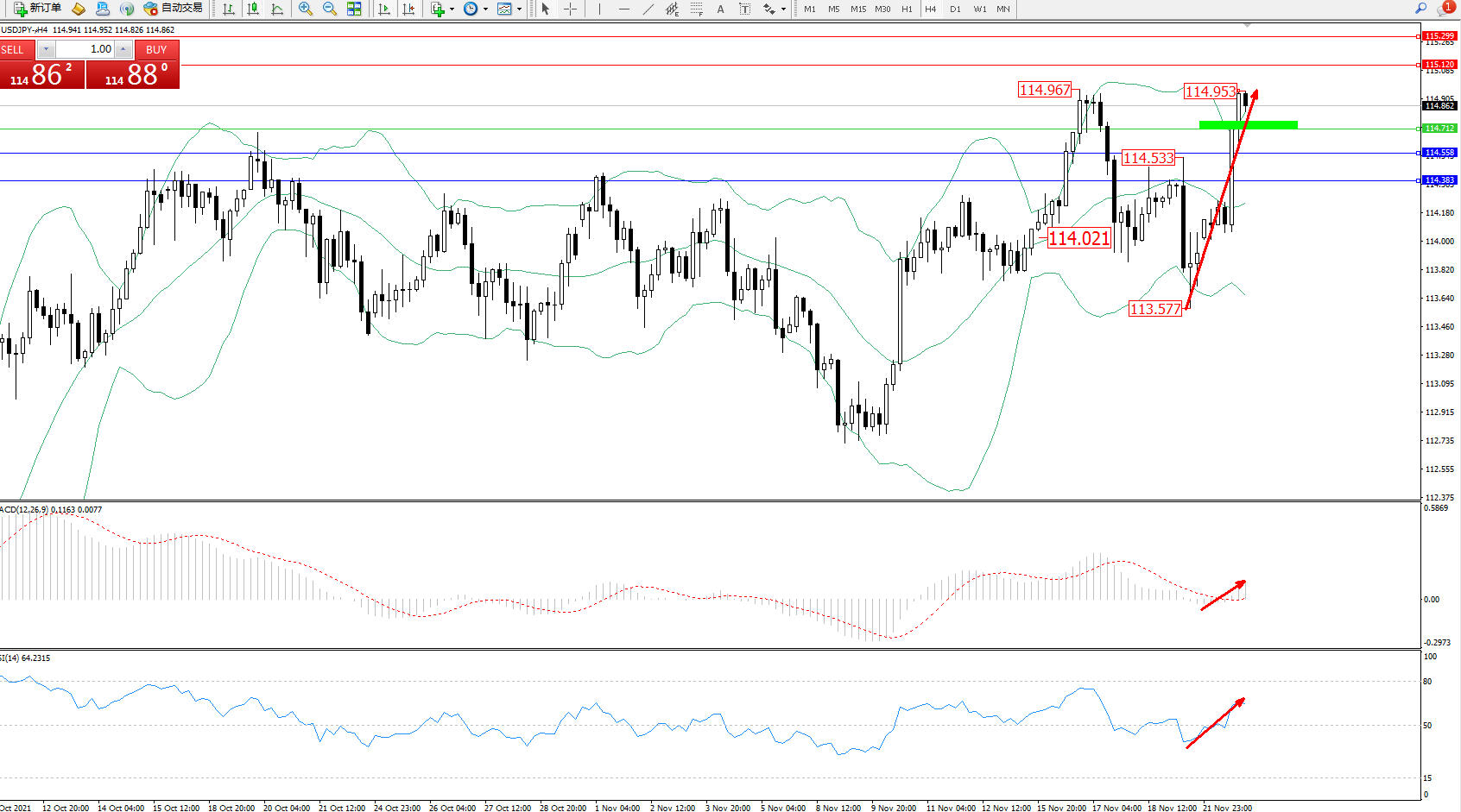 技术点评:长时间维持在布林带指标通道内维持宽幅震荡中,多头动力强势拉升至布林带指标上轨附近节点,有继续攀升态势,布林带指标呈张口走势中,MACD指标处于0轴线上方多头动力维持整理上移,RSI指标低位多头动力持续震荡上移至多头区域持续上扬;