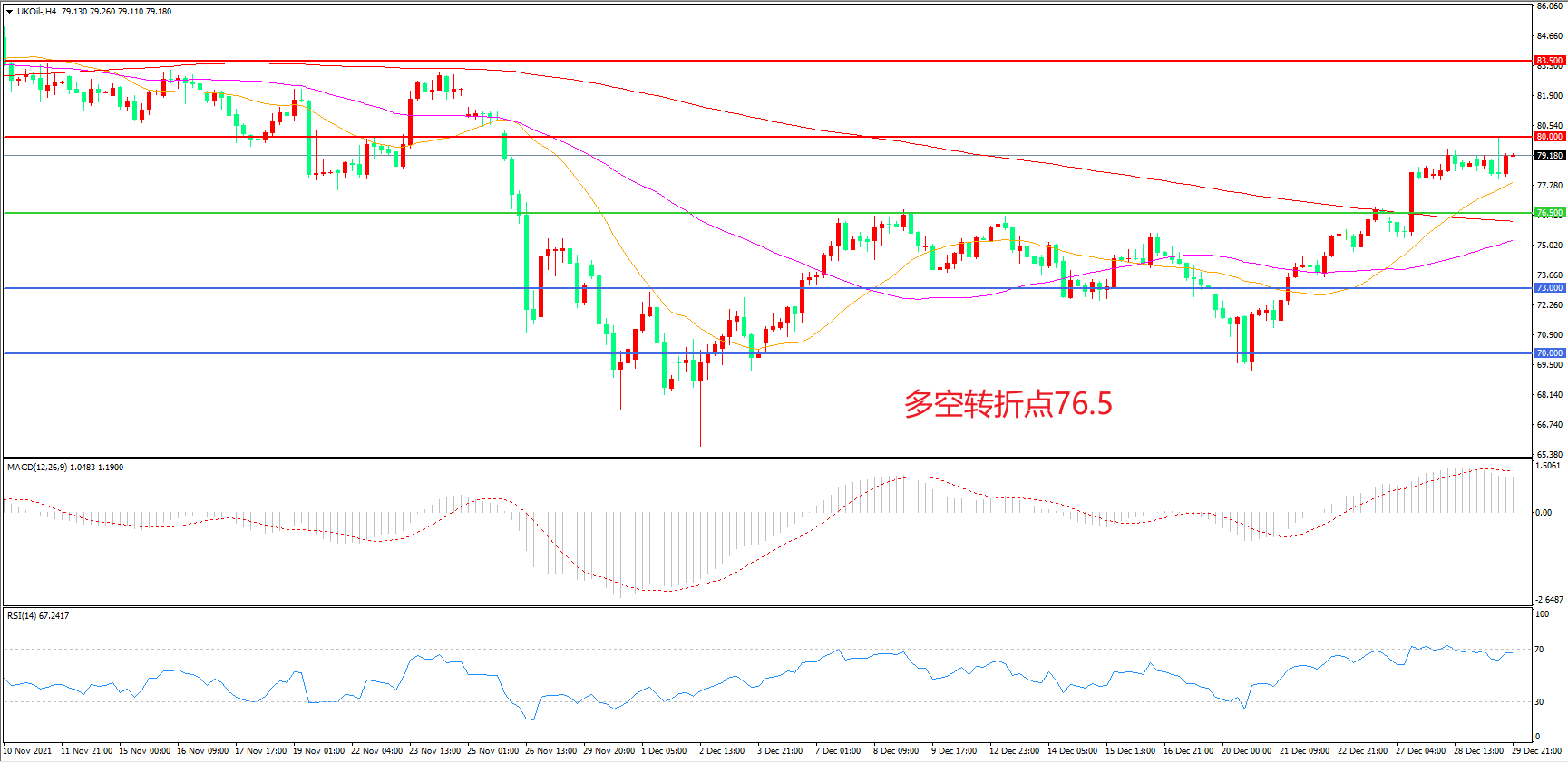 交易策略:在76.50之上看涨,目标80. 00                83.00