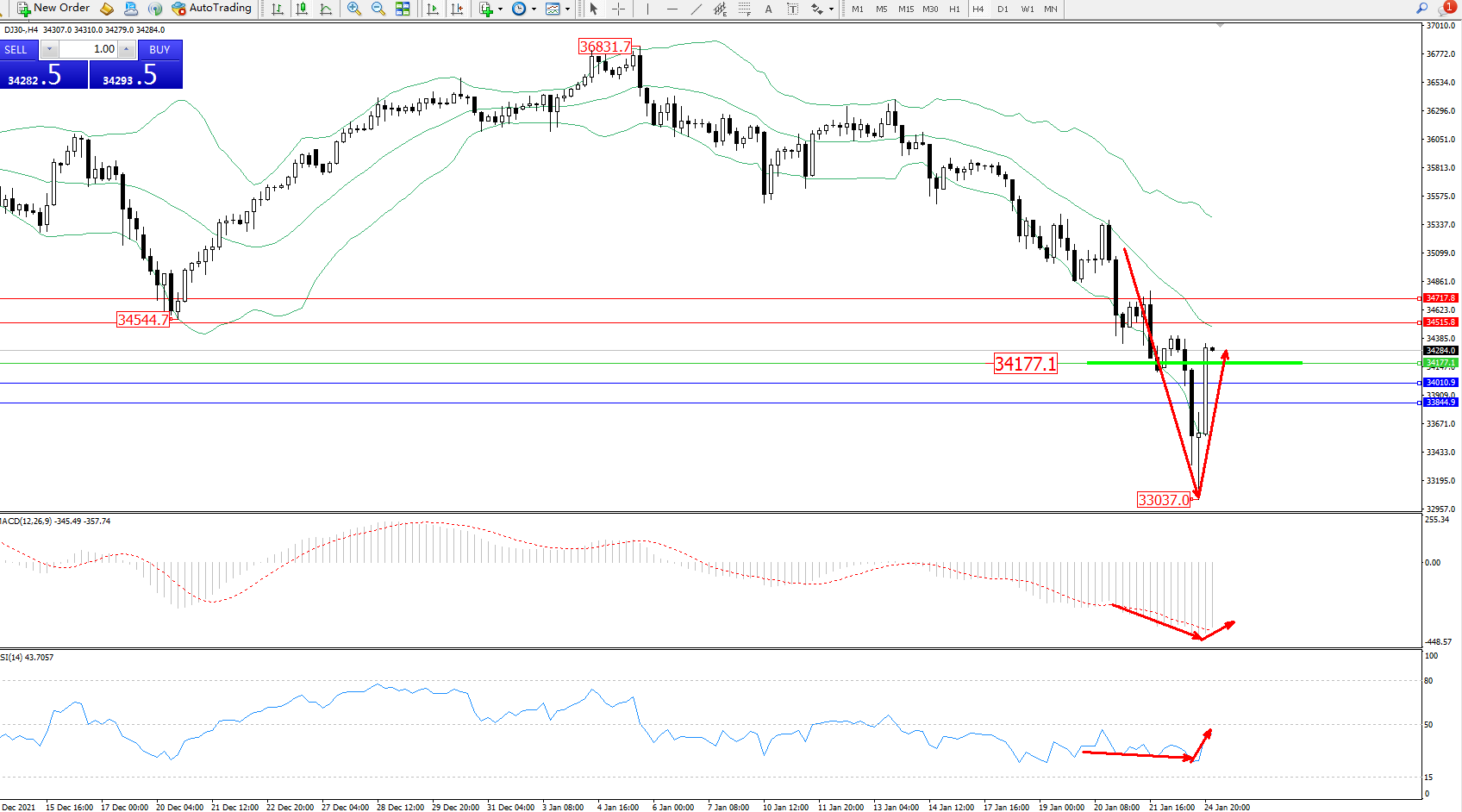 技术点评:空头动力处于布林带指标通道中下轨区间持续震荡下行,低位抵达33037位置节点后快速回升,呈V型反转走势上扬, 即将触及布林带指标中轨附近节点,短期拉升走势或将延续,布林带指标呈缓慢张口走势持续中,MACD指标处于空头区域维持整理下行后开始反转,RSI指标处于空头区域窄幅震荡后回升;