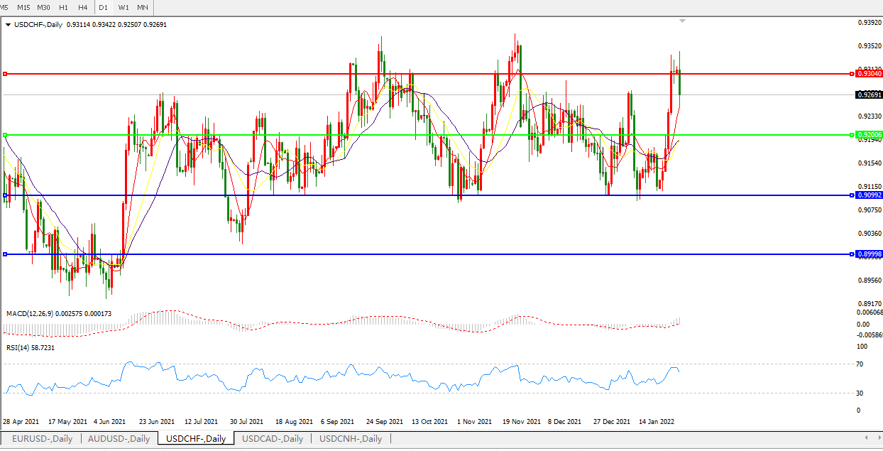 交易策略:0.9200上方看涨,目标0.9300、0.9400