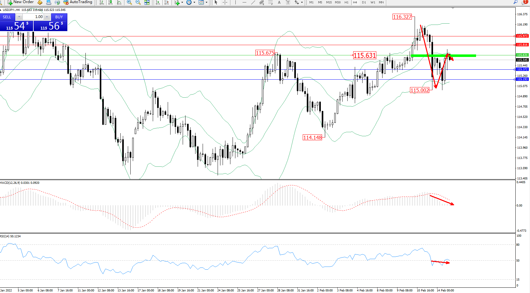 交易策略:115.631下方看跌,目标115.372、115.193