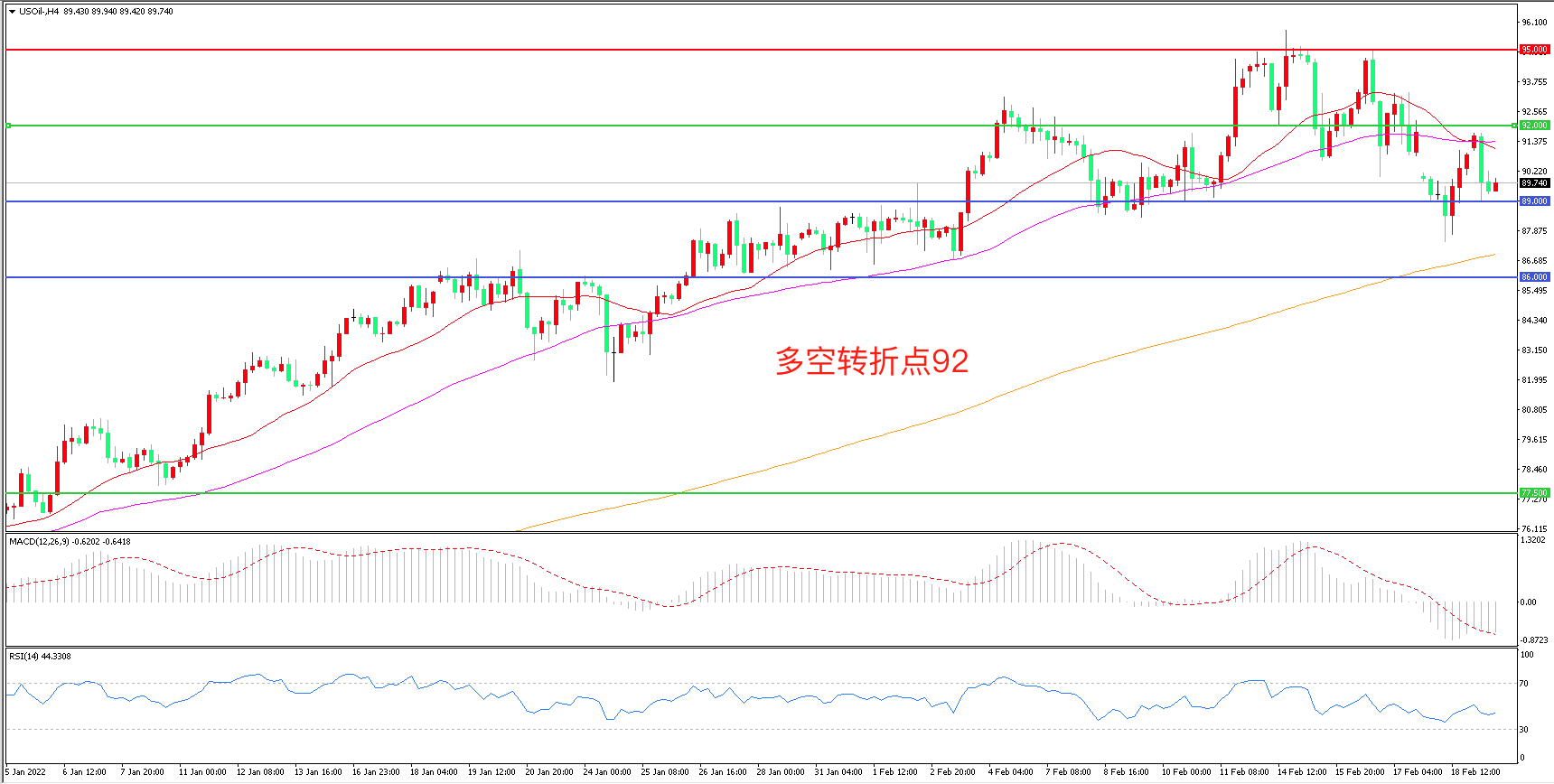 交易策略:在92.00之下看跌,目标89.00 86.00
