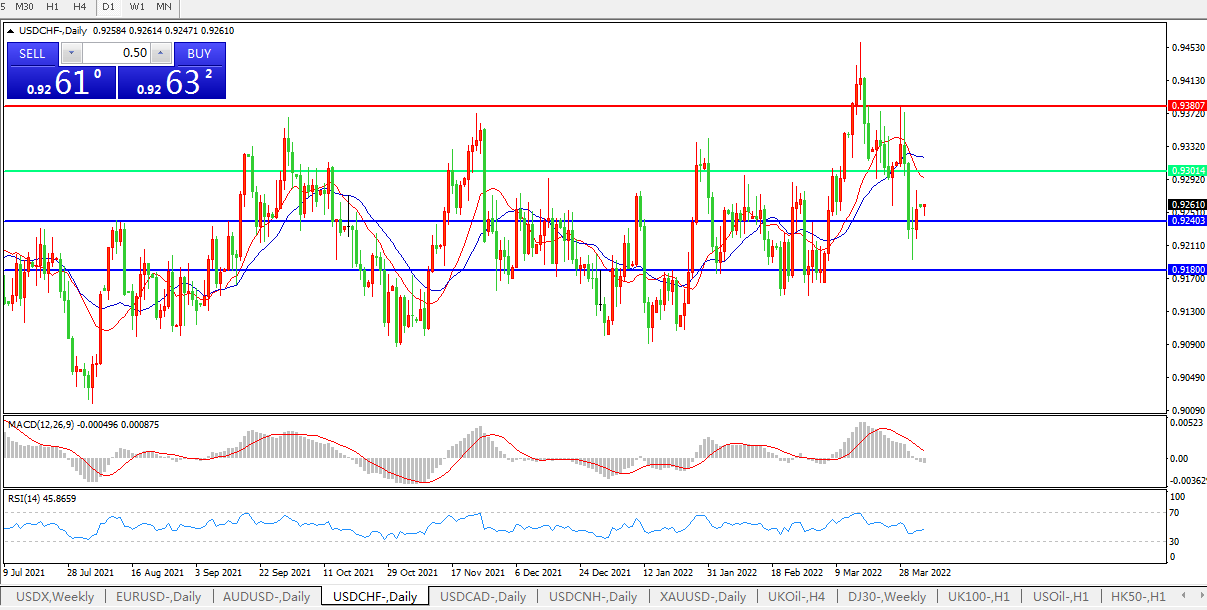 美5月激进加息概率较大,美元兑瑞郎小幅反弹