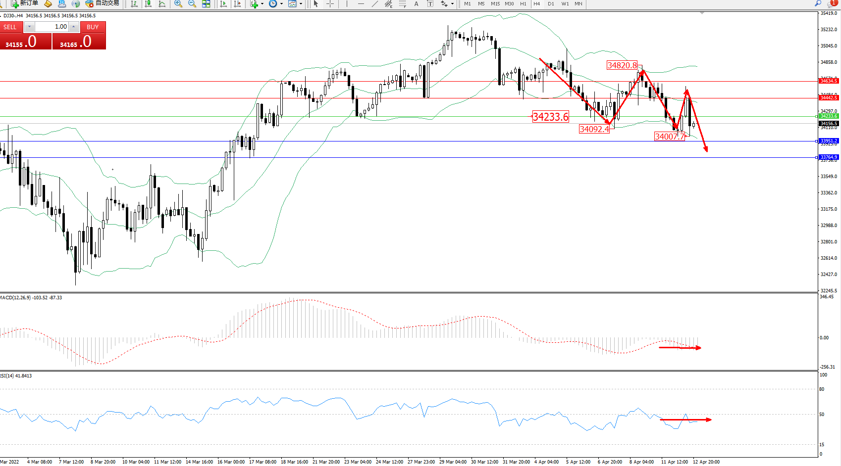 道琼斯指数4月12日(周二)收盘下跌87.99点,跌幅0.26%,报34220.09点;美股三大股指集体低收,道指初步收跌,美国通胀数据基本符合预期,降低了美联储采取长期激进紧缩政策的可能性,导致美债收益率下降;指标10年期美债收益率下滑,因数据显示3月通胀加速,但逊于许多市场人士的预期;尽管黄金被视为通胀对冲工具,但物价上涨可能导致各国央行升息,推高债券收益率,并增加持有非孽息黄金的机会成本;美联储理事布雷纳德周二表示,在最新的通胀数据中有一些“可喜的”降温迹象,但他强调,央行仍在继续进行一系列加息,并努力削减其资产负债表。