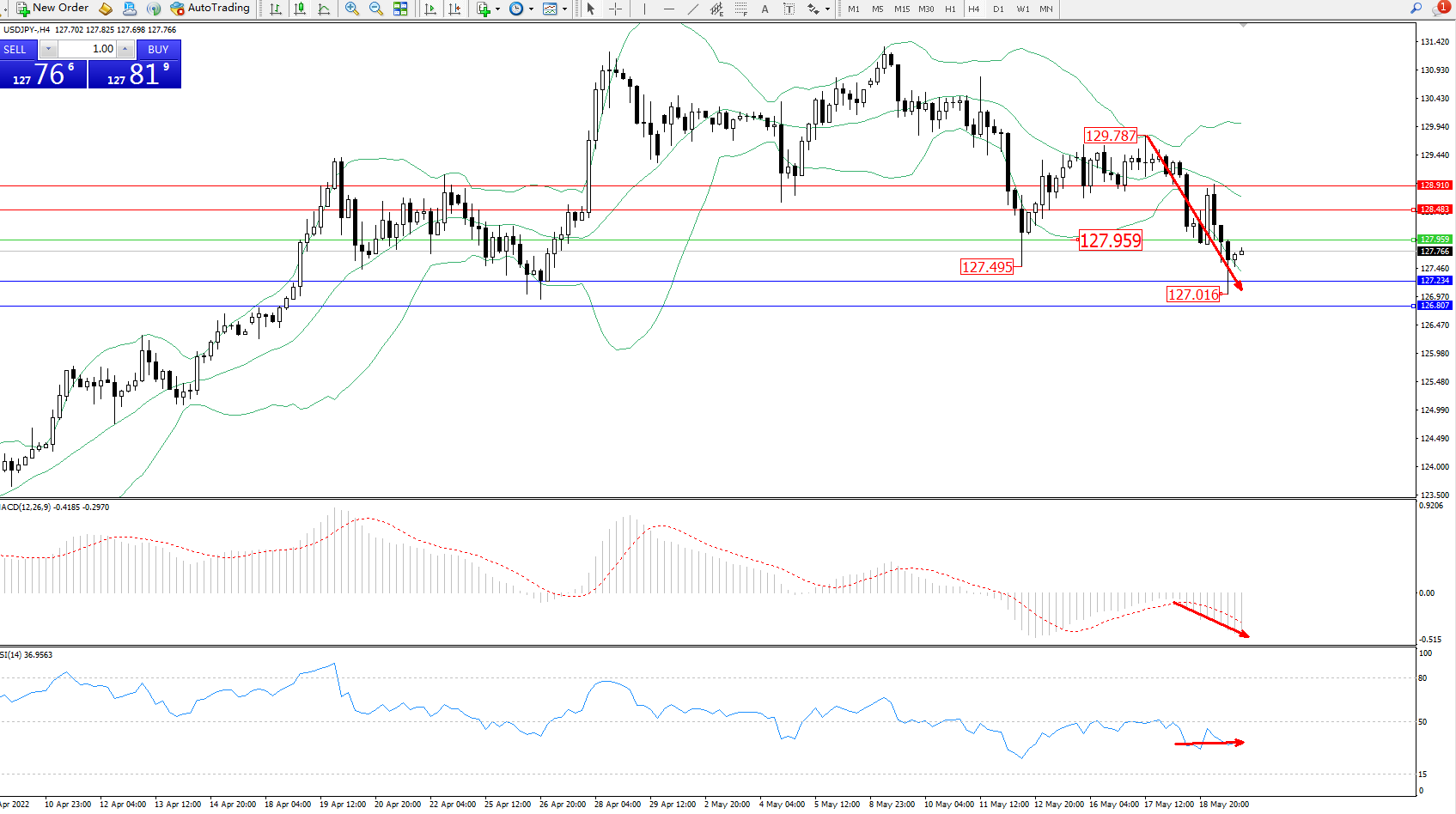 交易策略:127.959下方看跌,目标127.234、126.807