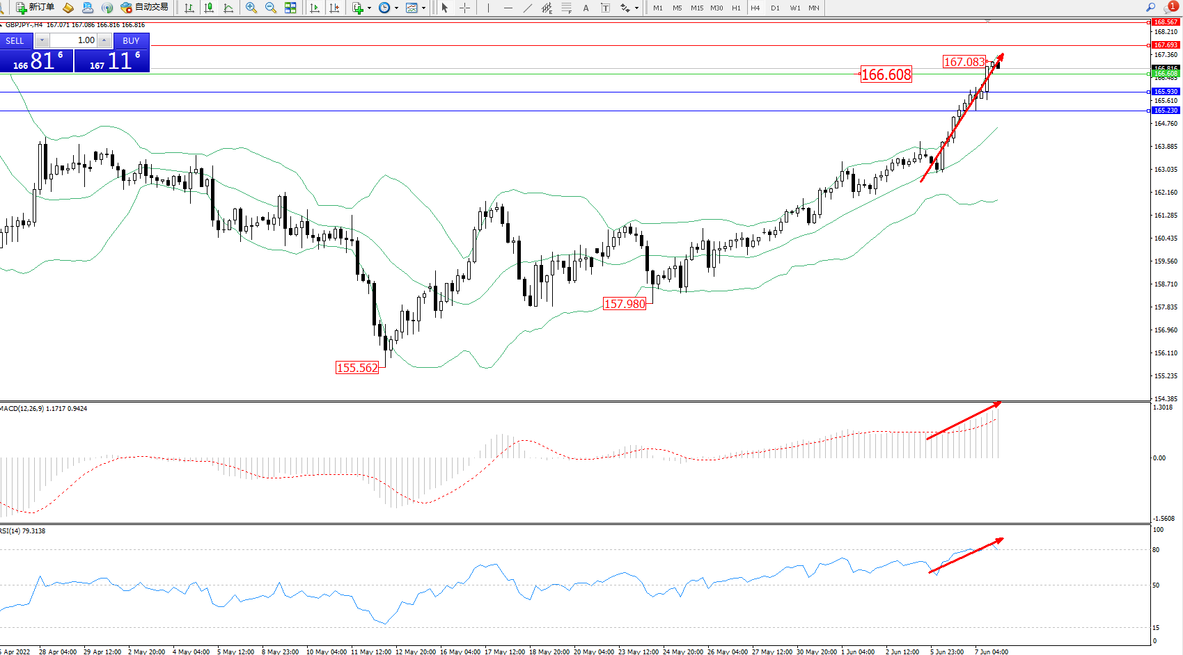 技术点评:多头动力延续布林带指标上轨附近持续震荡上扬,高位抵达167.083附近节点后整理,短期多头拉升走势态势良好,布林带指标呈缓慢张口走势持续中,MACD指标处于多头区域维持震荡不断上移中,RSI指标处于多头区域维持震荡上移至超买区80均衡线上側徘徊;