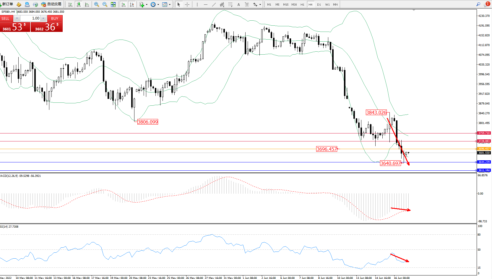 标普500指数6月16日(周四)收盘下跌122.75点,跌幅3.24%,报3667.99点;全球股市跌势蔓延至美股市场,经济衰退担忧再次浮现。