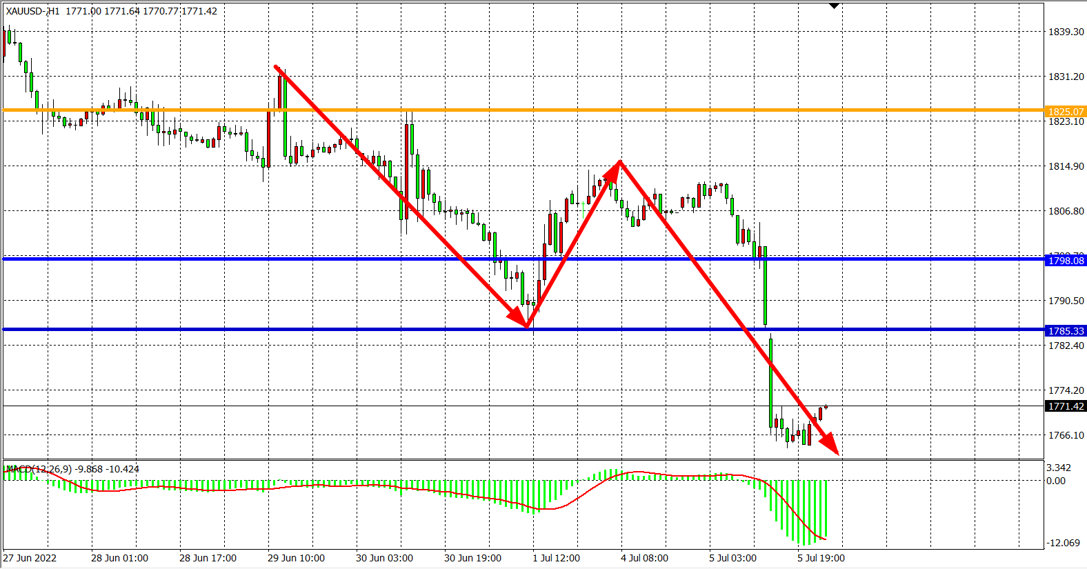 现货黄金XAUUSD 1小时图