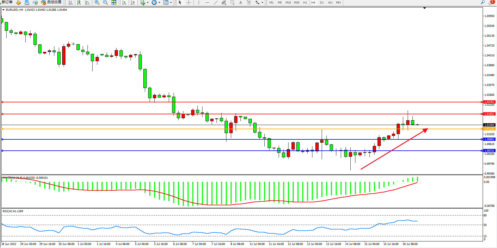 交易策略:1.01232上方看涨,目标1.01852、1.02352