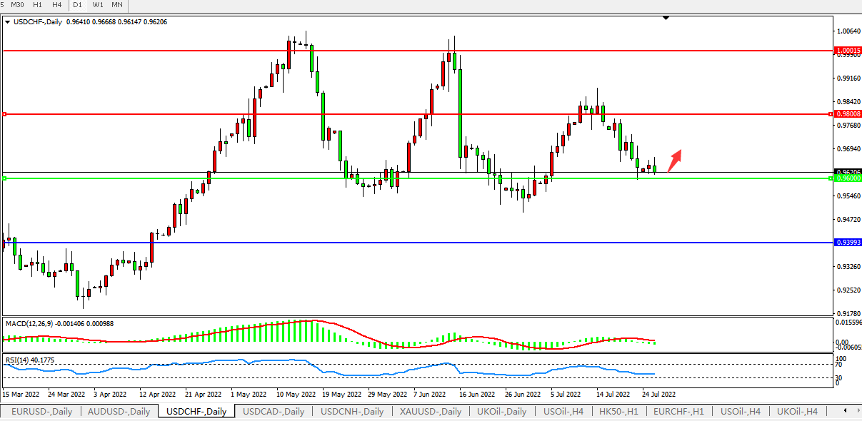 USDCHF:0.9600支撑有效