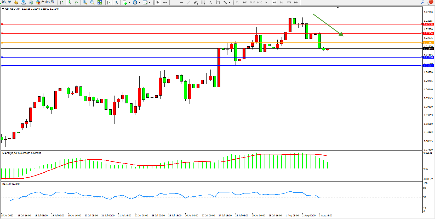 交易策略:1.21853下方看跌,目标1.21318、1.21013