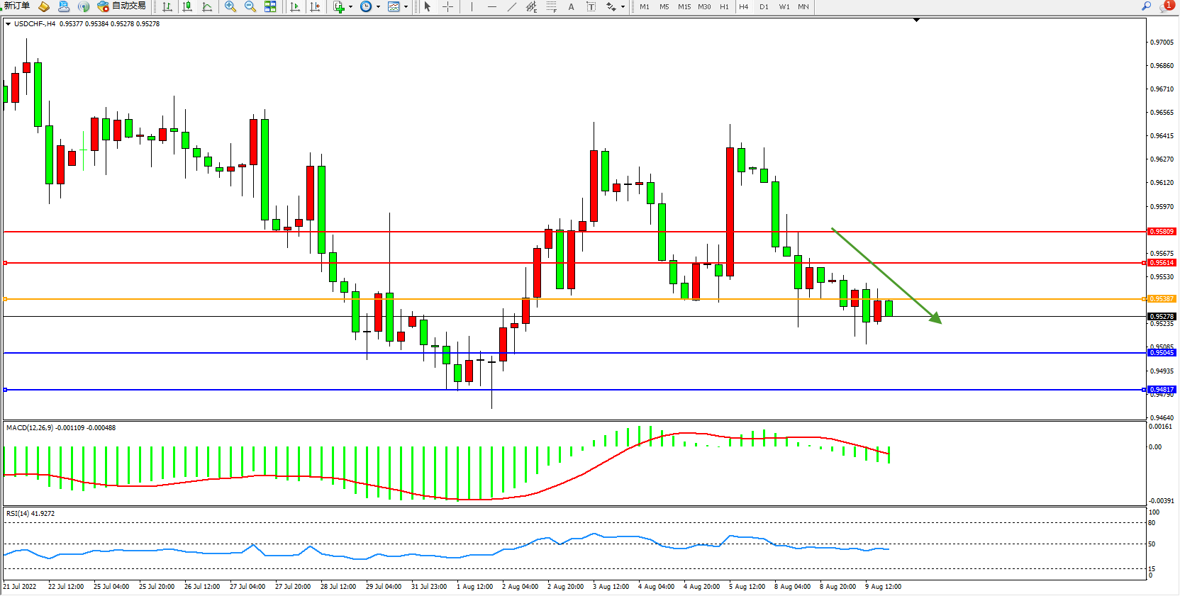 交易策略:0.95387下方看跌,目标0.95045、0.94817