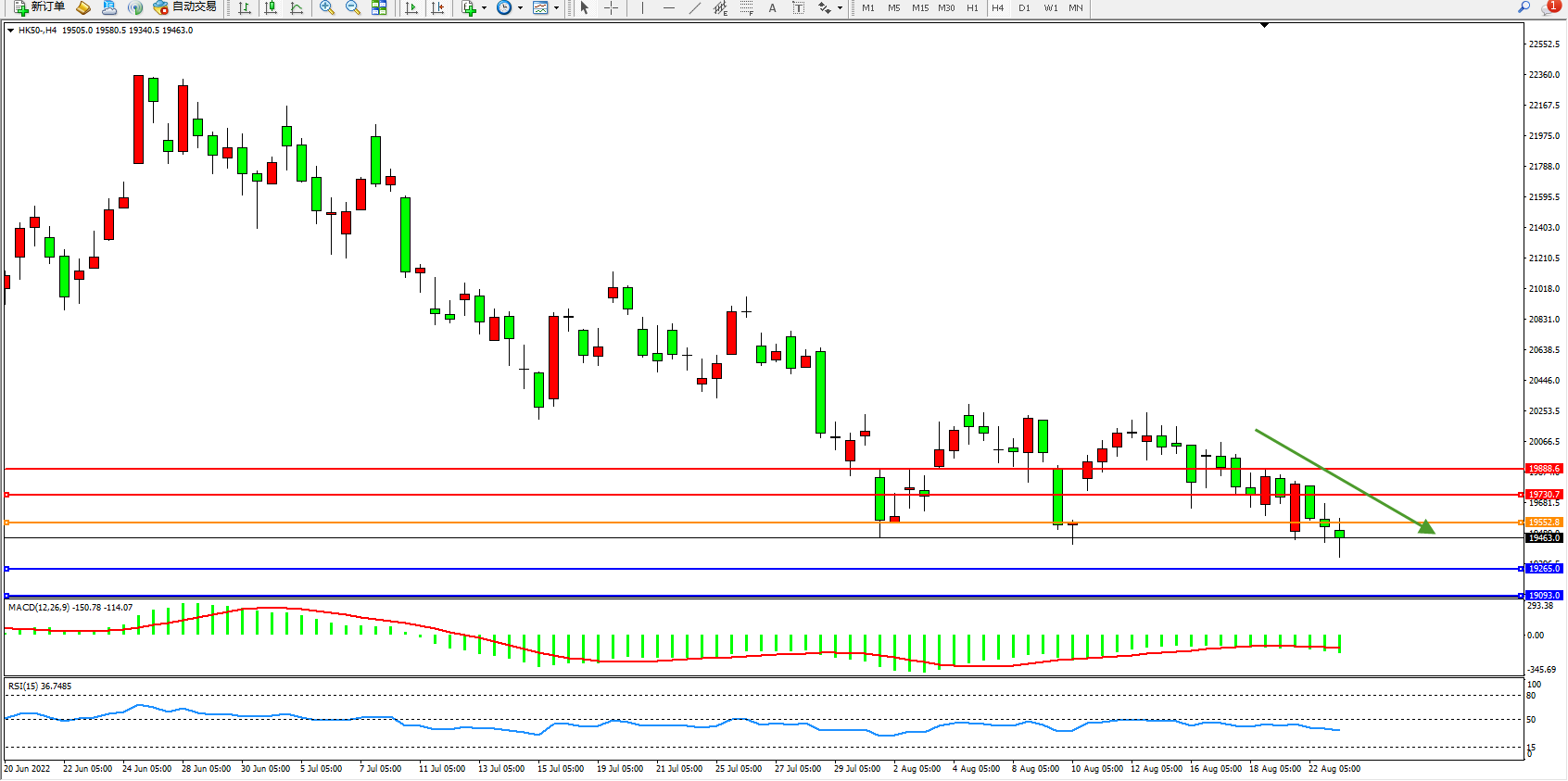 恒指HK50 4小时图