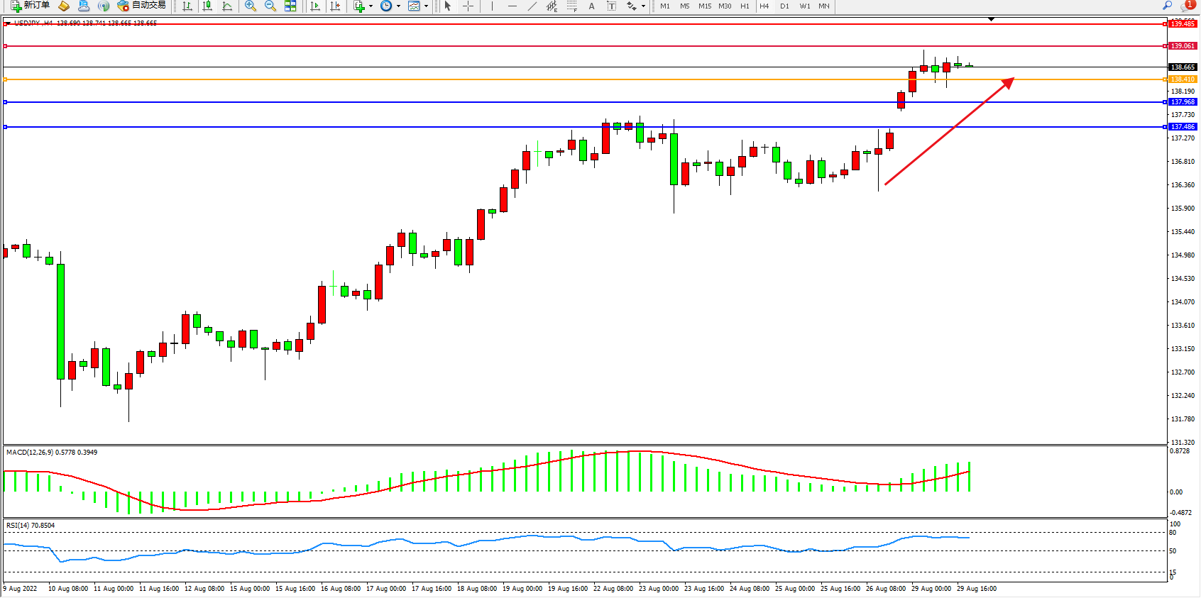 美元兑日圆维持138.665附近震荡,美联储和日本央行政策分歧,将进一步扩大美日利差,为此恐驱使美元/日上探24年高点139.38。美国短债收益率保持上升,两年期美债收益率维持在两个月高点附近。