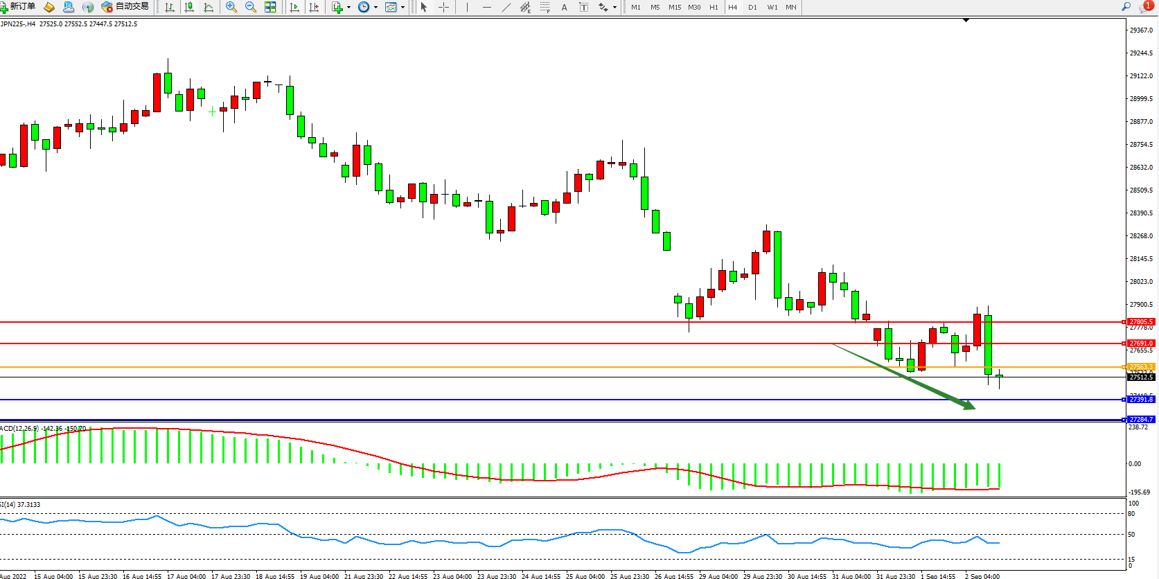 日经225指数9月2日(周五)收盘下跌22.97点,跌幅0.08%,报27638.50点。日本央行收益率曲线控制政策所瞄准的10年期国债收益率本周已升向0.25%的上限,并有可能随着全球其他债券收益率的上升而逐日走高。