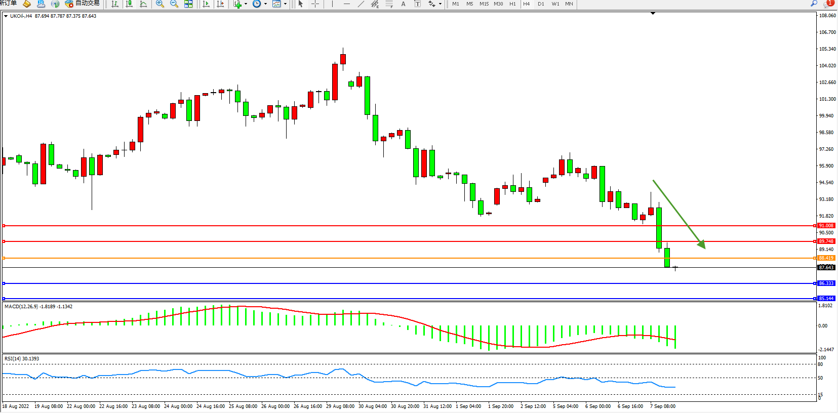 布油UKOil——4小时K线图显示: