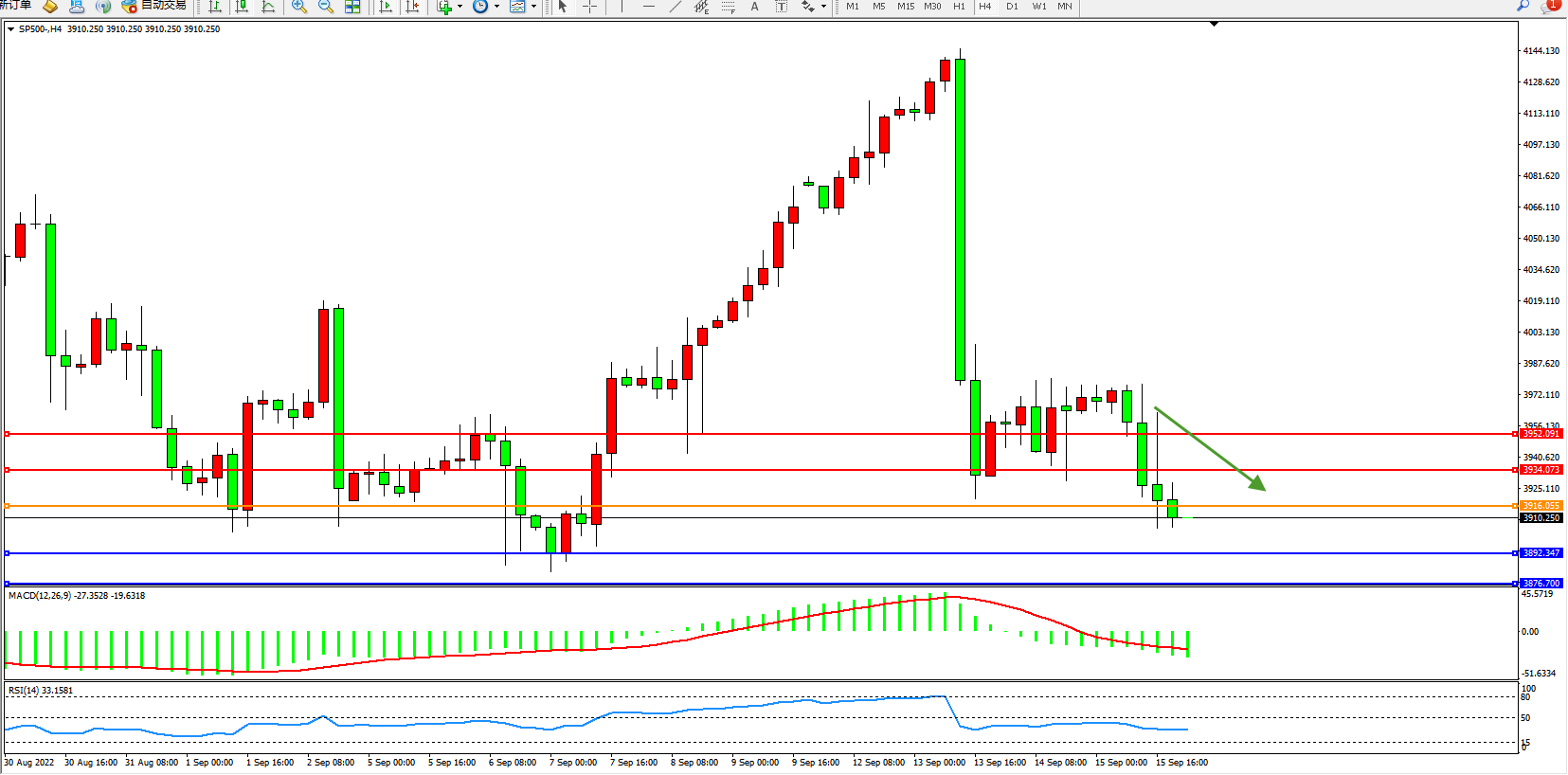 标普SP500——4小时K线图显示: