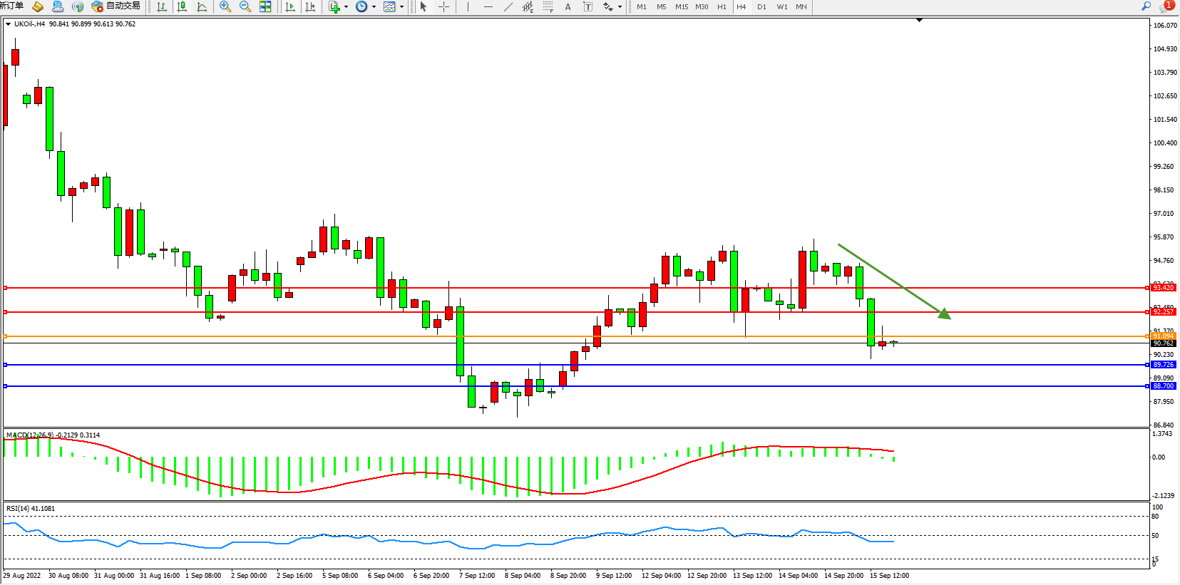 布油维持90.762附近震荡,自8月初以来,布伦特原油价格大部分时间都在100美元/桶以下。任何攀升的尝试都失败了。对美国和欧洲即将到来的经济衰退,以及对新冠疫情的担忧,都令价格承压。迄今为止相当强劲的石油需求可能会失去增长动力。预计到2022年底,布伦特原油价格将为90美元/桶。