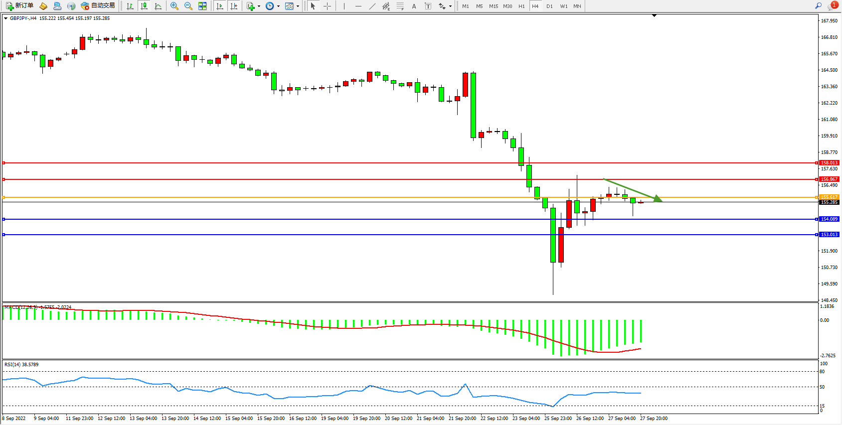 镑日:低位弱势下移 GBPJPY  EURGBP