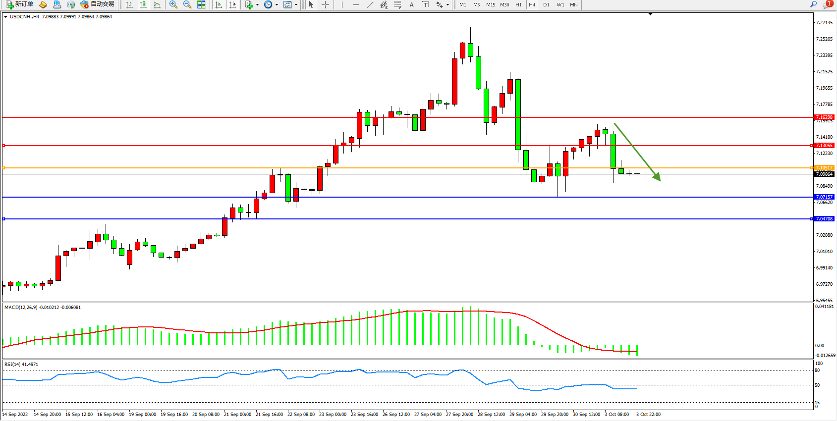 交易策略:7.10517下方看跌,目标7.07157、7.04708