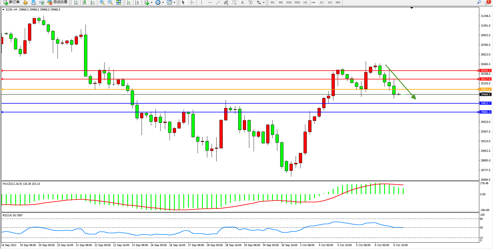 道琼斯指数10月6日(周四)收盘下跌347.40点,跌幅1.15%,报29926.47点;美国上周申请失业保险的人数超过预期,尽管仍处于历史低位,这是劳动力需求可能开始放缓的最新迹象。