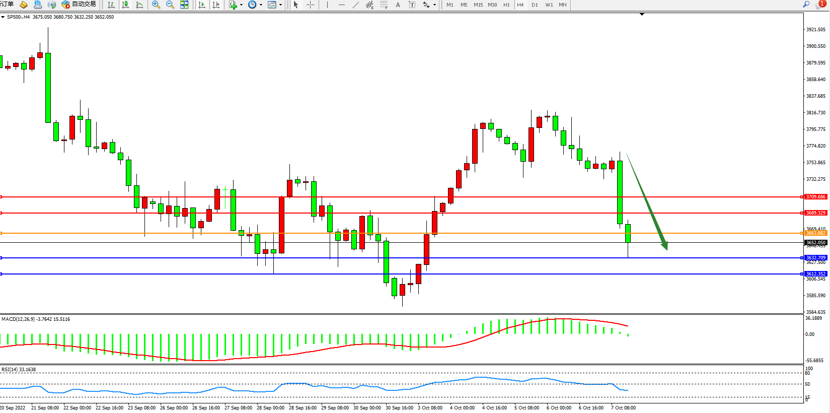 标普500指数10月7日(周五)收盘下跌103.62点,跌幅2.77%,报3640.90点;尽管数据与预期大致相符,但失业率下降似乎是市场所关注的,因为这对美联储政策有所影响。至于仍然很低的失业率,再加上首次申领失业救济人数较低,裁员步伐仍然很缓慢,这当然会让美联储对继续大举加息感到兴奋。