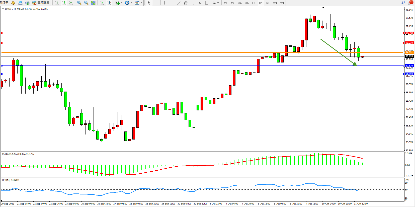 布油UKOil——4小时K线图显示: