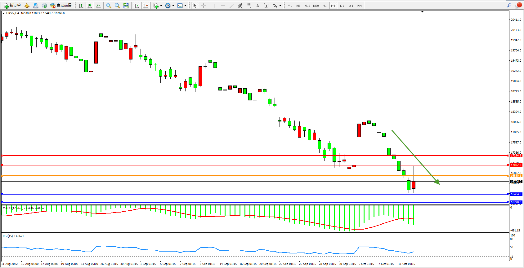 香港恒生指数10月12日(周三)收盘下跌131.33点,跌幅0.78%,报16701.03点;港股午后受A股带动大幅拉升转涨,一度走出V型反转行情,尾盘回落三大指数继续收跌。恒生科技指数跌0.27%,大型科技股冲高回落明显,但跌幅较早盘明显收窄,今日南下资金逆势净流入25.56亿港元,大市成交额放大至1128亿港元。