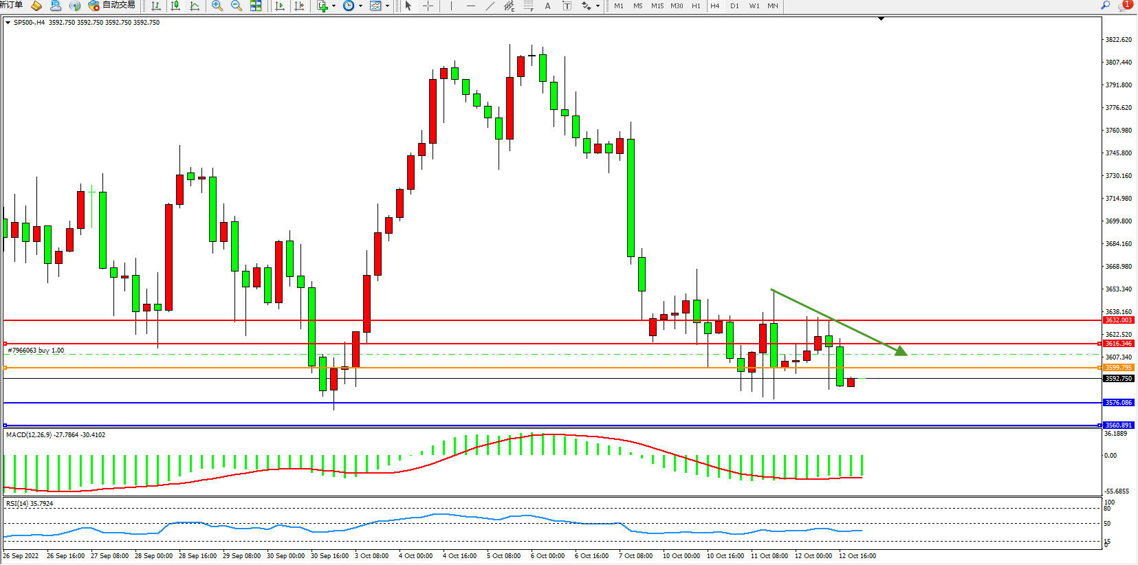 标普500指数10月12日(周三)收盘下跌12.04点,跌幅0.34%,报3576.80点;9月份美国生产者价格涨幅超过预期,表明通胀压力需要时间才能缓和,并使美联储继续在积极加息的道路上走下去。