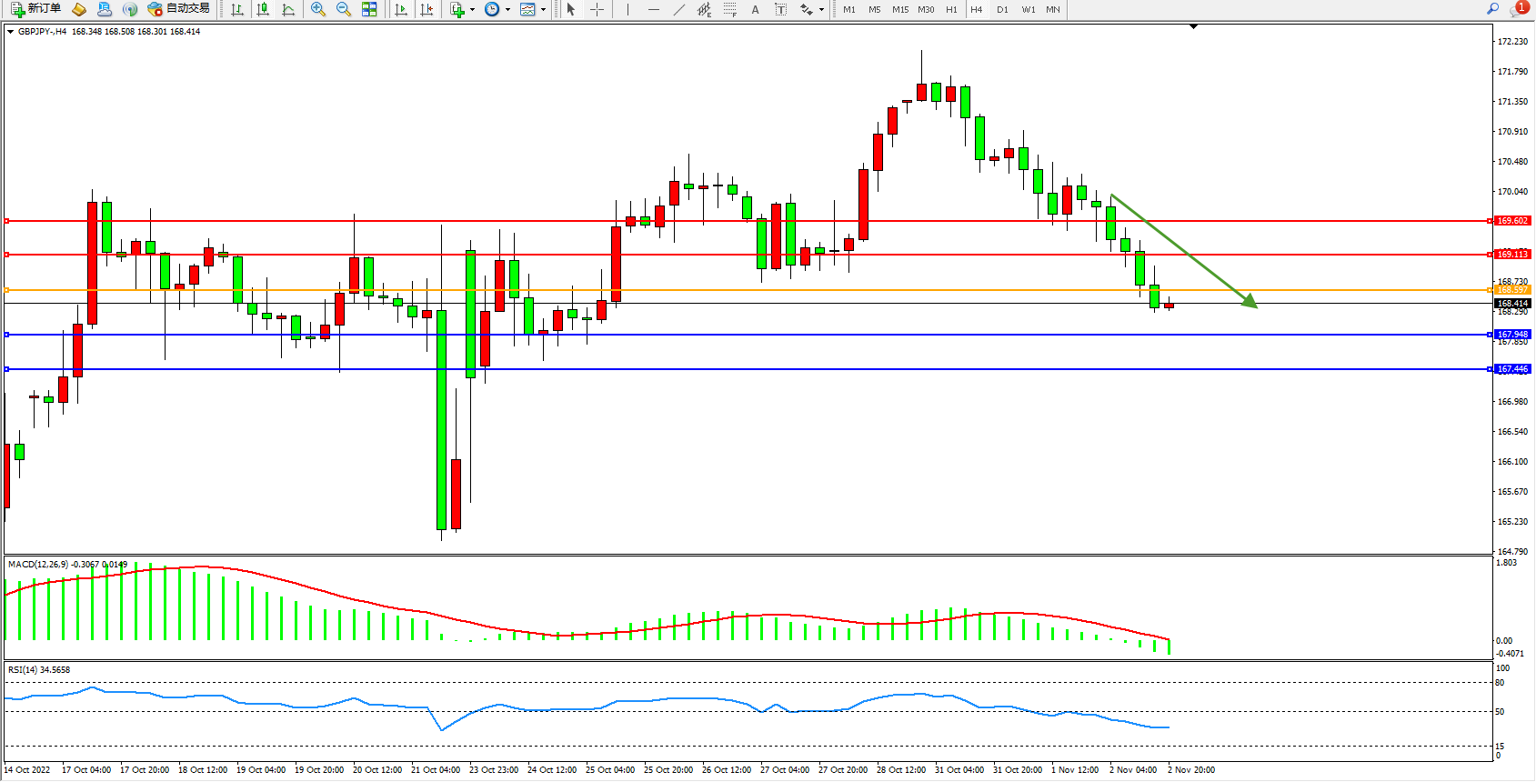 英镑兑日圆维持168.414附近震荡,当特拉斯辞职并由苏纳克接任后,市场信心进一步恢复。随着英国财政政策的180度大转弯,有关英国的大部分好消息可能已被消化。